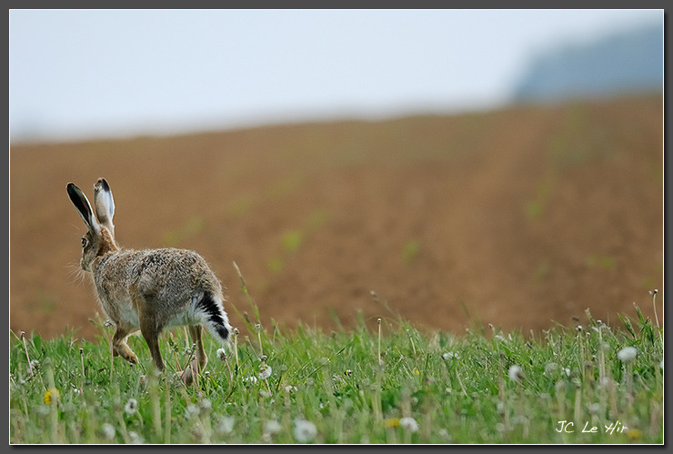 Fatigué ou dépité ? Tel un "poor lonesome cowboy", ce lièvre quitte ses congénères tranquillement.