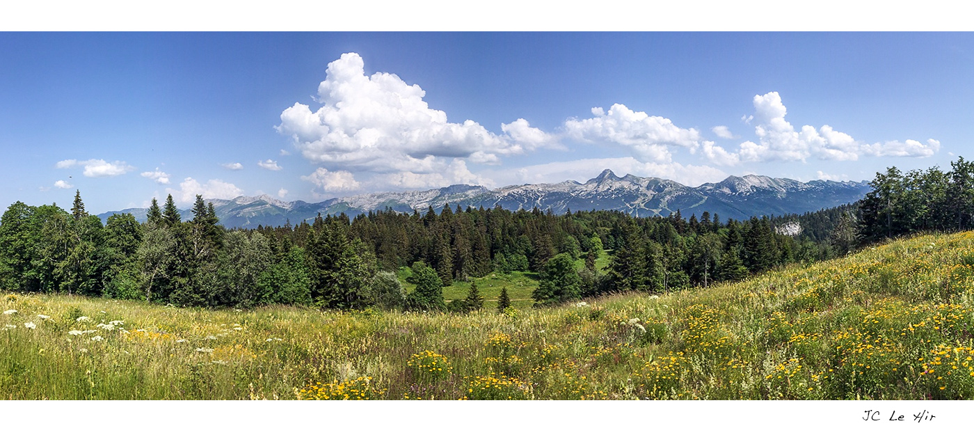 Face au bélvédère de Chateau-Julien se déploie la bordure orientale du Vercors avec plus haut que les autres sommets, la Grande Moucherolle (2284 m).