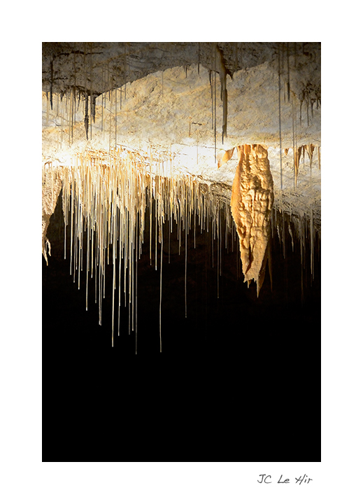 Les stalactites se présentent sous des formes variées : fistuleuses et draperies.