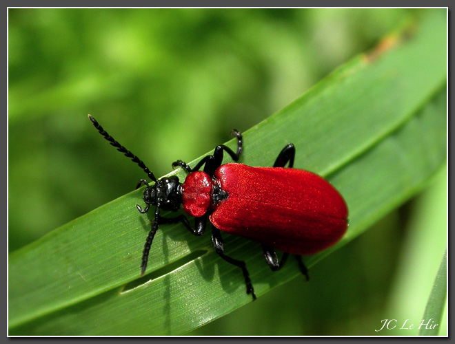 | Le mois de mai est arrivé, le Cardinal est de sortie ! la larve du Pyrochroa coccinea (Coléoptères) s'est métamorphosée en un insecte adulte qui se nourrit de nectar ou de sève sucrée, souvent en bordure du chemin forestier. |
