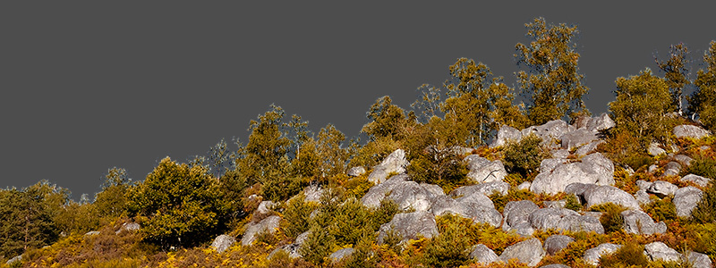 Paysages forestiers dans le Massif de Fontainebleau à l'automne.