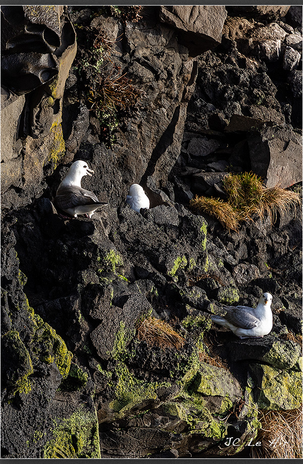 Le Fulmar Boréal (Fulmarus glacialis) est très présent aux abords des falaises basaltiques, le long des côtes islandaises.