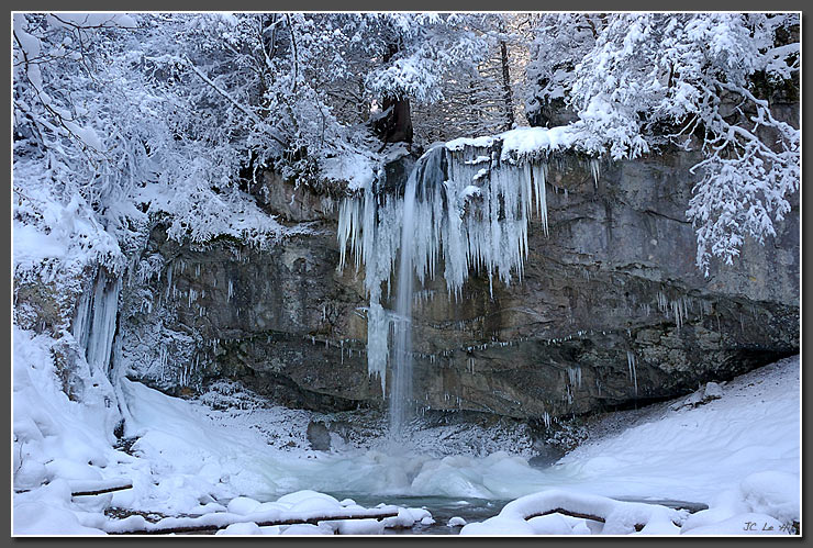 | L'hiver 2007 a tardé à se montrer. En quelques jours, neige et froid ont su métamorphoser la cascade de la Fauge près de Villard de Lans. |
