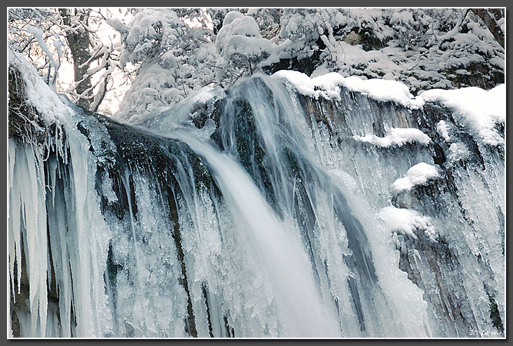 Sculptures de glace et stalactites forment le décor au milieu duquel s'écoule l'eau de la Fauge.