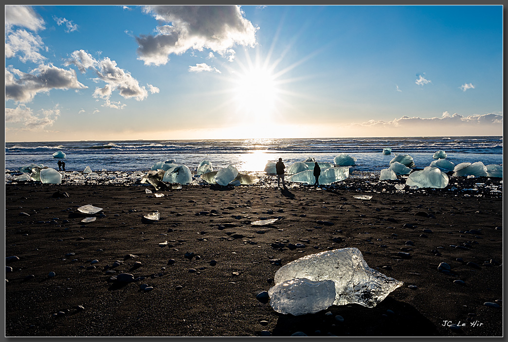 Après avoir été rejetés à la mer grace aux courants de marée, les growlers s'échouent et se brisent sur la plage toute proche de Joökulsarlon.