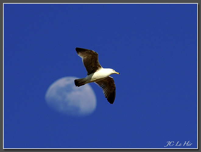 Ailes tachetées mais corps plus blanc, ce jeune Goéland leucophée est âgé de 2 ans.