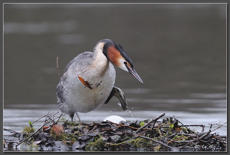Lors de la relève de couvaison, c'est l'occasion d'apercevoir les gros oeufs des Grèbes. Au fur et à mesure la coquille de blanc deviendra foncée, souillée par les plantes aquatiques qui forment le nid. Visionnez ces comportements dans la vidéo : "Le Printemps au Pâtis"