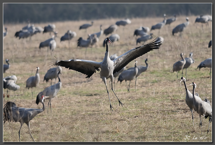 Encore une démonstration bondissante participant à la parade nuptiale de la grue cendrée (