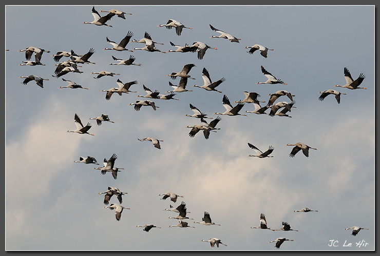 | La journée s'étire et maintenant des groupes plus importants vont et viennent de champ en champ. Certains rejoignent aussi le lac du Der. |