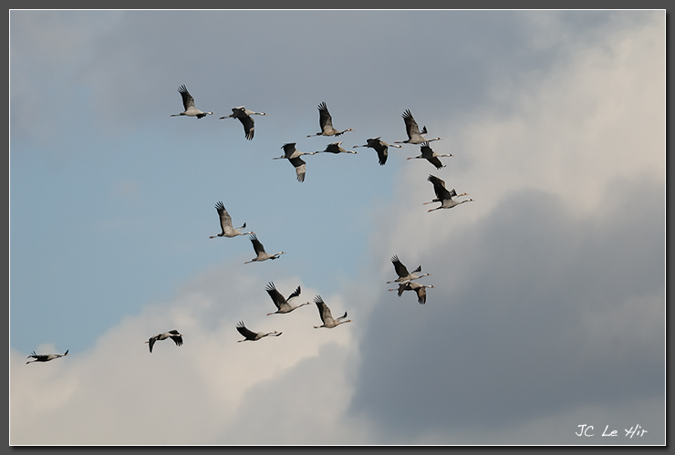 | En cette période, de nombreuses grues arrivent par vague dans la région du Der en provenance de l'Afrique ou du Sud de l'Espagne. Elles feront ou non une halte de quelques jours au lac du Der avant de poursuivre vers le Nord de l'Europe pour y assurer la reproduction de l'espèce. |