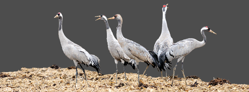 Les nombreuses Grues cendrées faisant halte au Lac du Der (51) se cotoient non sans interactions.