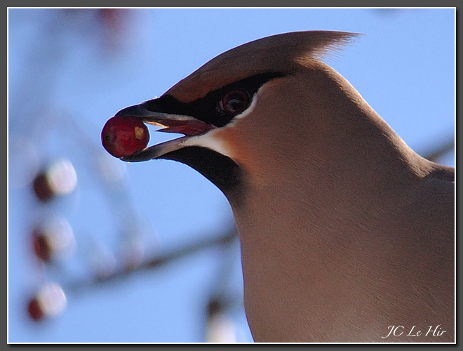 | Venu de la taïga et des forêts de Conifères de Scandinavie et de Sibérie, le Jaseur boréal a traversé l'Europe en quête d'une nourriture abondante. |