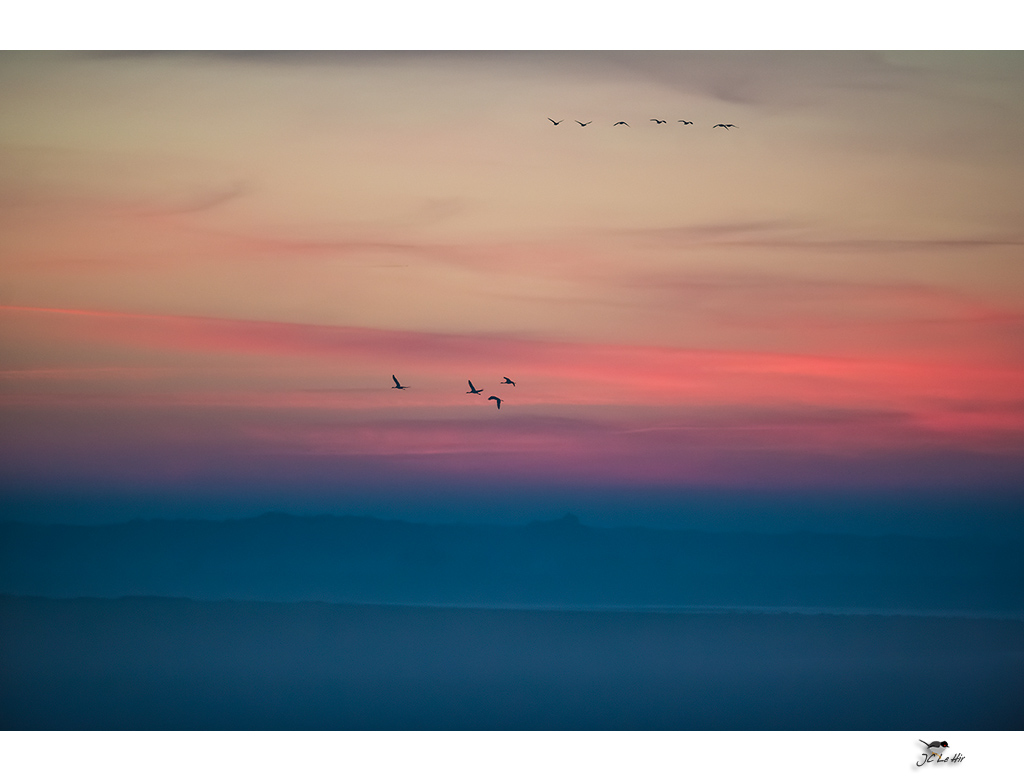 Un matin de Novembre 2014, au Lac du Der (51), l'aube pointe tout juste.