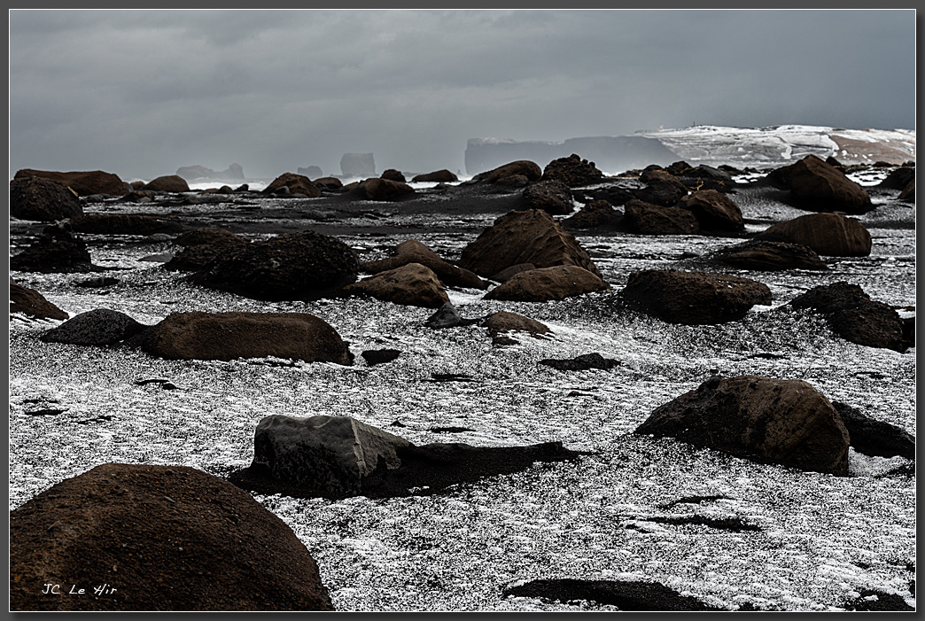 Champ de lave sur la plage de sable noire de Reynisfjara.