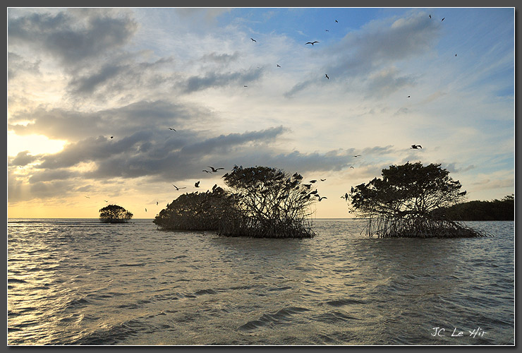 | En fin de journée, certains des îlets de Palétuviers sont très fréquentés par de nombreux oiseaux qui les adoptent comme dortoirs. |