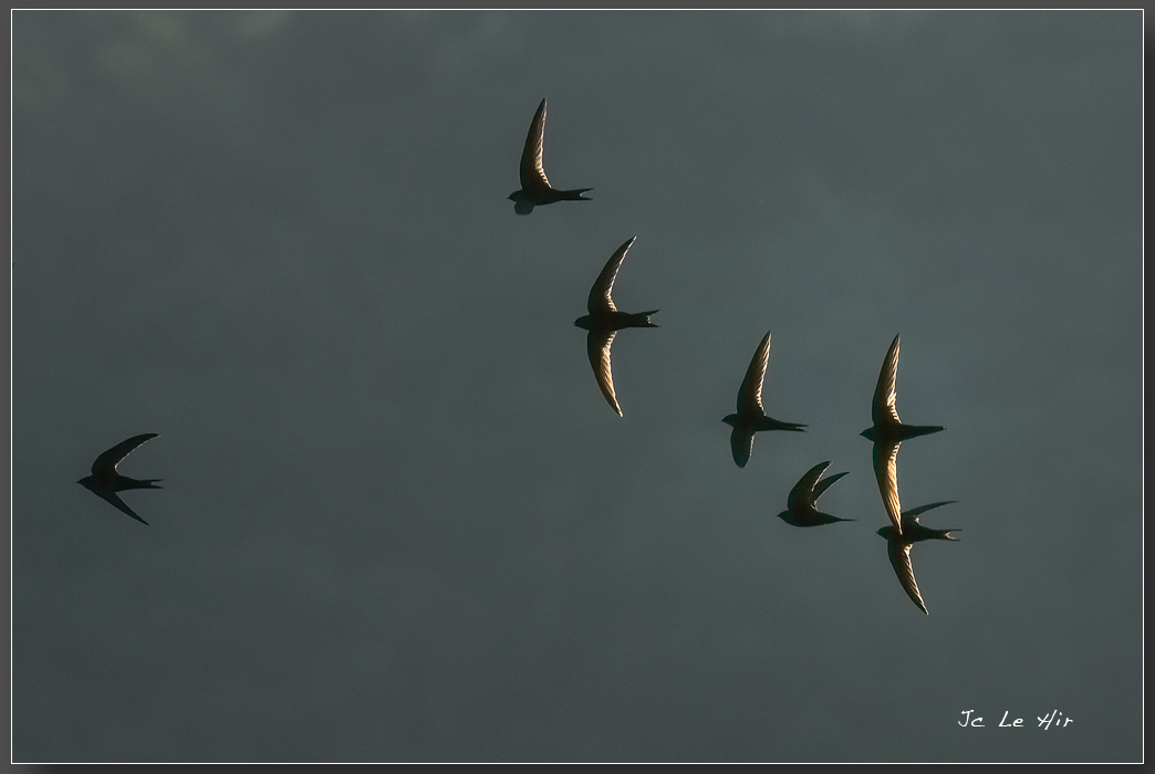 Lancés à près de 160 km à l'heure, poussant des cris stridents, les Martinets noirs (Apus apus) marquent les limites de leur territoire.