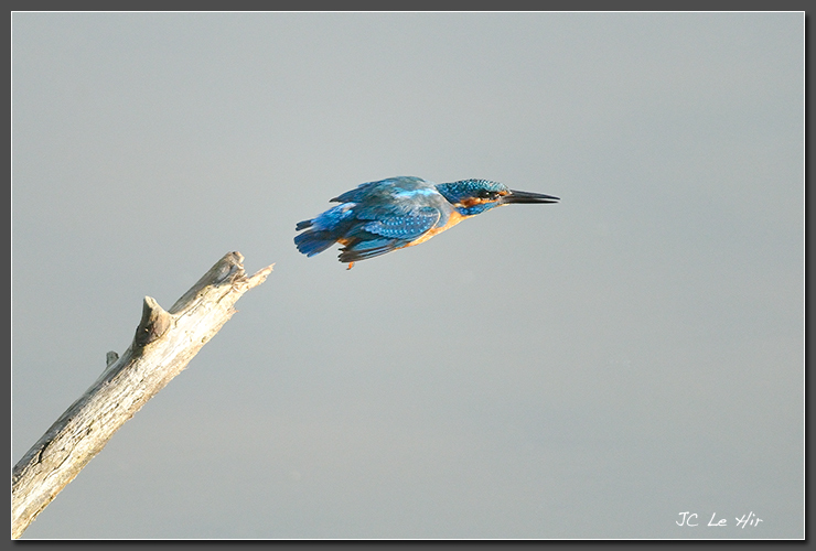 Tel un bolide, la flèche bleue quitte son perchoir.