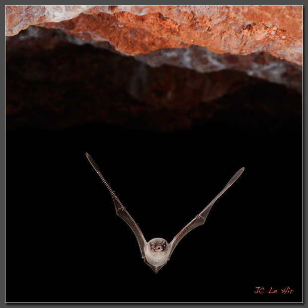 Minioptère de Schreibers (Miniopterus schreibersii) sortant de sa cavité.