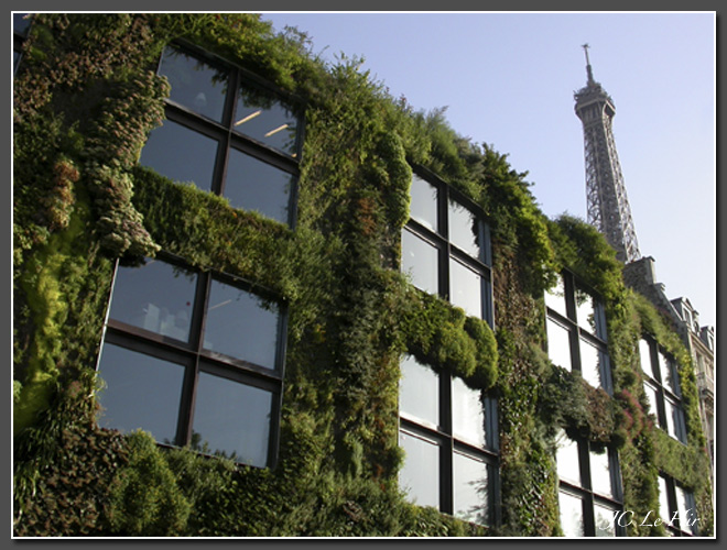 | Septembre 2006 : 15000 plantes couvrant 800 m2 ; Patrick Blanc a conçu cette façade végétalisée, la plus grande au monde, pour le nouveau Musée du Quai Branly. À quand ton tour, Eiffel ? |