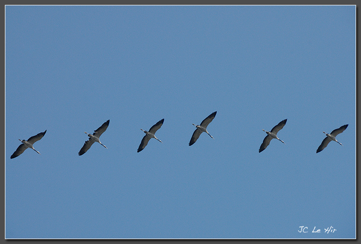 Mars 2011 : Haut dans le ciel, les vagues de Grues cendrées (Grus grus) se succèdent. Profitant de conditions météo favorables, elles poursuivent leur voyage migratoire vers l'Allemagne ou la Suède survolant le Lac du Der sans même s'y arrêter.