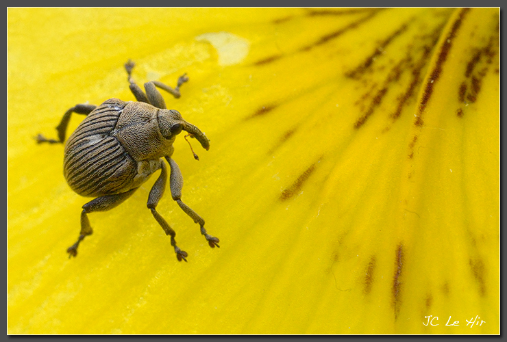 Mai 2015 : Mononychus punctumalbum est un petit Coléoptère de 3-4 mm qui se nourrit et se reproduit dans les Iris des marais (Iris pseudacorus). Son nom de genre vient de la présence d'une seule griffe (et non 2) à chaque patte, son nom d'espèce de la tâche blanche visible sur les élytres (plus visible dans la forme brune que marron comme ici)