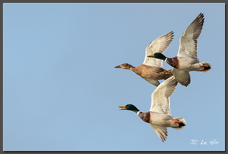 Mars 2017 : 2 mâles et une femelle de Canards Colvert (Anas platyrhynchos).