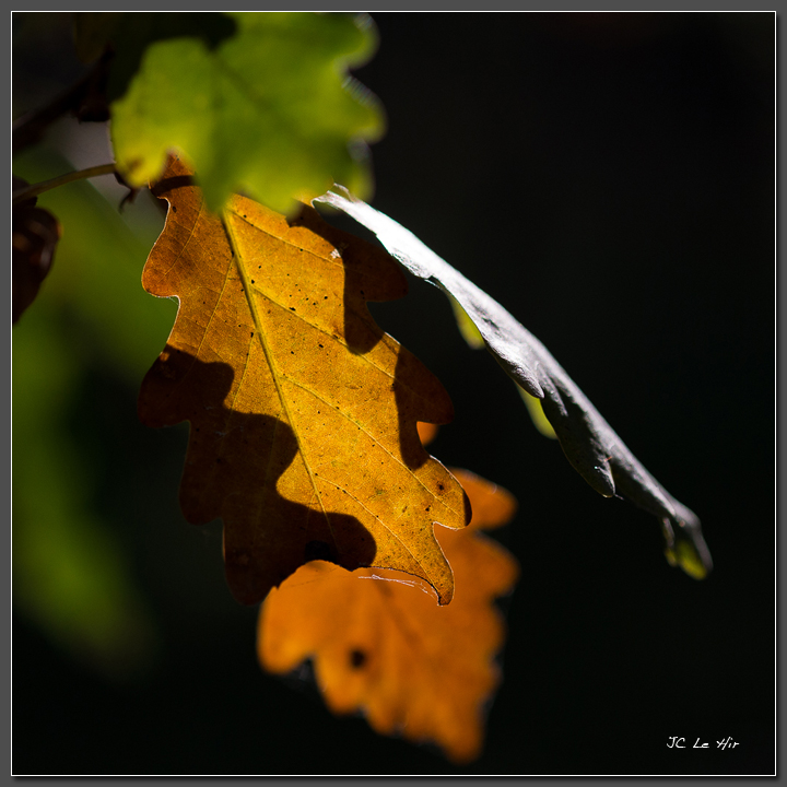 Octobre 2018 : Bien que l'été se poursuive aux niveaux lumière et température, les feuilles du Chêne pédonculé (Quercus robur) prennent leurs teintes automnales.