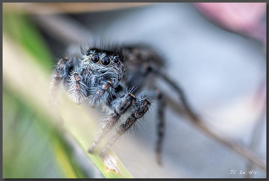 Juillet 2023 : Sautant de caillou en caillou dans le pierrier, la Saltique de Sloane femelle(Philaeus chrysops -Arachnide) me surveille du coin des yeux !