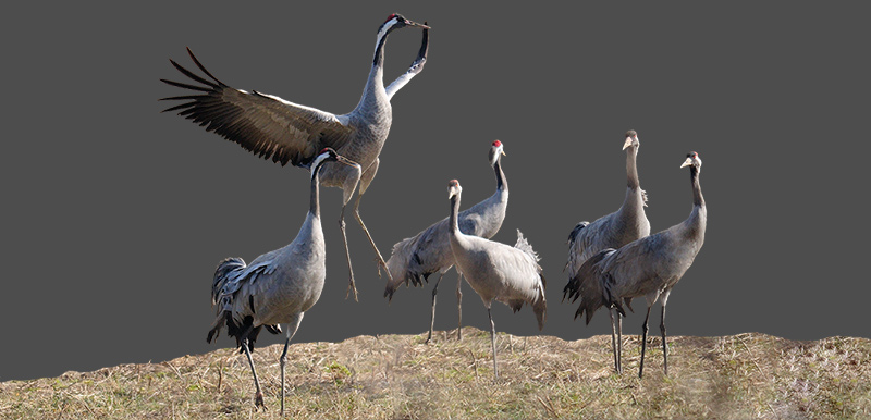 Lors de leur retour vers l'Europe du Nord, les Grues commencent à parader dans la région du lac du Der.