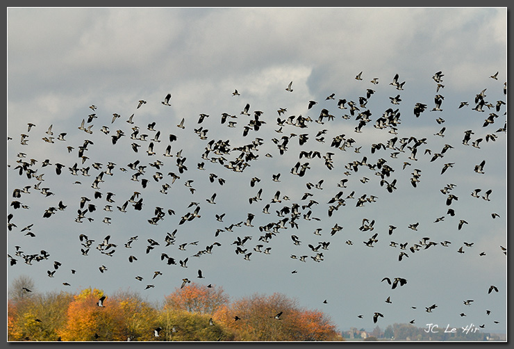 L'automne arrive, les plaines fertiles de la Brie accueillent les grands groupes de Vanneaux huppés (Vanellus vanellus). |