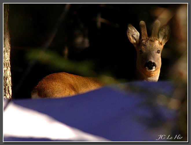 | Cornes de velours sur la tête, ce Chevreuil mâle (Capreolus capreolus) se fait aussi remarquer de toute la forêt par ses puissants "aboiements". |