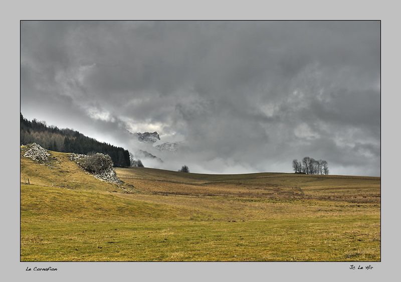 Entre Villard et Lans en Vercors, le Cornafion se montre au profit d'une trouée.