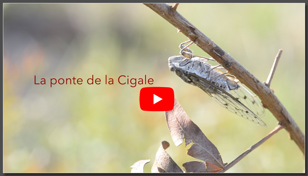 Si les mâles de Cigales animent bruyamment l'été de la garrigue provençale, un travail assidu des femelles se fait en silence. Cette vidéo vous fait découvrir la ponte de la Cigale Grise.