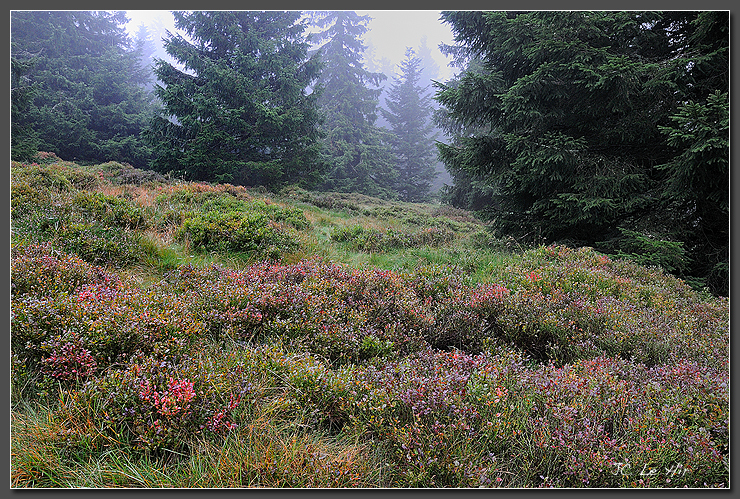 À l'automne, les Myrtilliers magnifient de leurs chaudes couleurs le Gazon du Faing.
