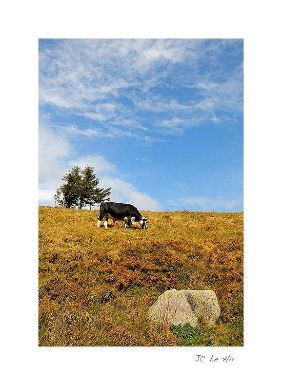 Figure emblèmatique des Hautes-Chaumes (sommet du Hohneck -1362 m) : la rustique Vosgienne au dos marqué de blanc.