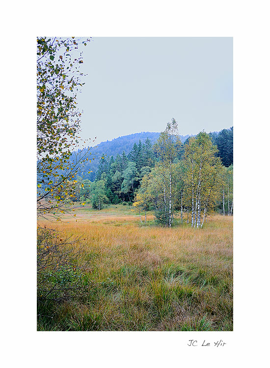 | Lorsque la tourbe s'accumule beaucoup sur les bords (9 à 10 m) comme ici dans la Réserve naturelle de Machais, la tourbière se bombe et s'assèche partieillement. Des espèces comme le Bouleau des Carpates (Betula pubescens - Betulaceae) ou les Myrtilliers s'installent avant que ce ne soit la forêt. |
