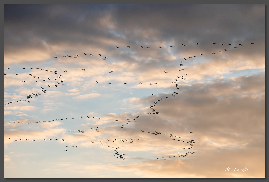 Novembre 2025 : Migration des grues cendrées (Grus grus) mais sous la menace de la grippe aviaire (Influenza aviaire) qui frappe particulièrement l'espèce.