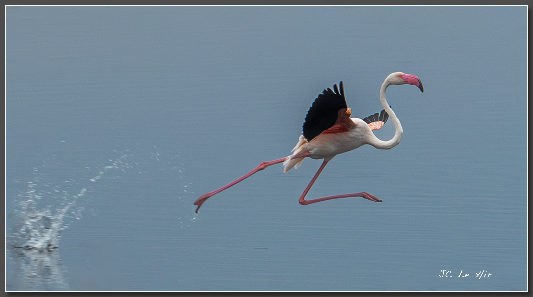 Août 2025 : Flamant rose (Phoenicoptreus roseus) en approche pour se poser !